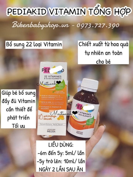 👉 Với đặc trưng của vị Cam và Mơ dịu ngọt, Pediakid 22 Vitamin dễ kích thích vị giác của trẻ, giúp trẻ dễ uống.
